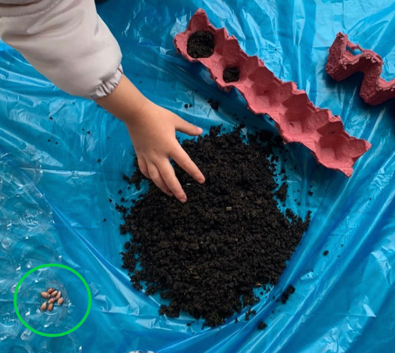 10 tane minik çekirdeği ayrı ayrı yumurta kolisinin içine sivri kısmı aşağı gelecek şekilde gömdük.