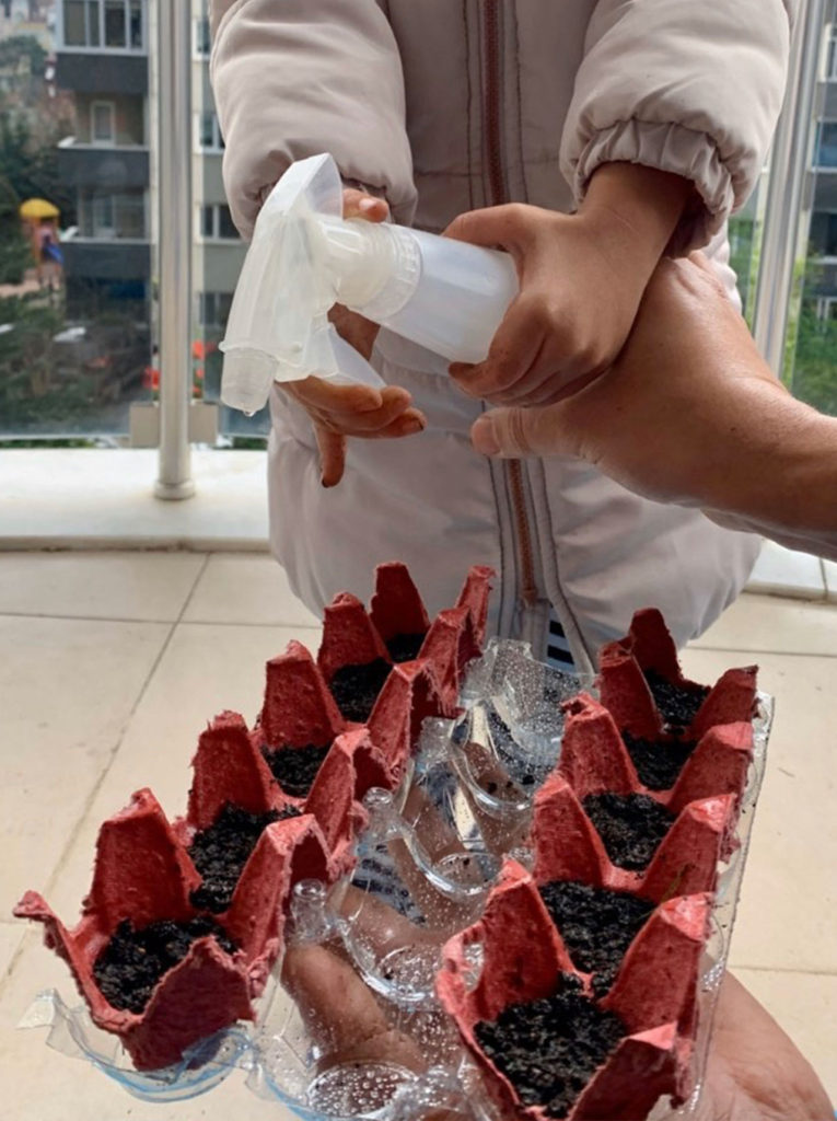 Evden çıkamadığımız bu günlerde çocukların en hasret kaldıkları şey doğa, toprakla temas ve açık hava oldu. Tabi ki bahçelerde kırlarda vakit geçirmeye benzemez ancak toprakla oynamak, bir bitkinin büyüme sürecine tanıklık etmek, emek vermek, emek verilenin kıymetli olduğunu anlamak ve en önemlisi sabretmeyi ve sorumluluk almayı öğrenmek için güzel bir fırsat. Boşuna büyükler ağaç yaşken eğilir dememişler. Eğer küçük yaşta bir bitkinin ne zorluklarla ve ne kadar uzun sürede büyüdüğünü öğrenirlerse, ileriki yaşlarda doğaya saygı duyup binlerce yılda yetişmiş ağaçlara ormanlara zarar vermezler diye düşünüyorum.