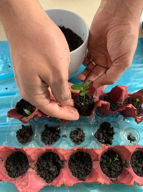 Başarılı şekilde filizlenen çekirdekleri saksıya ektik.